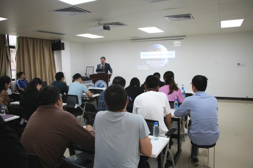 3月15日上午,联合国环境规划署首席科学家刘健博士受邀访问研究院,并在科技北楼401会议室作学术报告。会议由研究院常务副院长蔡宴朋教授主持,研究院冯景春教授、解玉磊教授、陈姗姗教授等40余名教师、博士后和研究生现场聆听了报告。首先,蔡宴朋副院长代表研究院对刘健博士的来访表示热烈欢迎。随后,刘健博士以“Making Peace with Nature”为题作报告。首先,他从改善人类与自然的关系以及人类对自然的危害等方面带领大家...