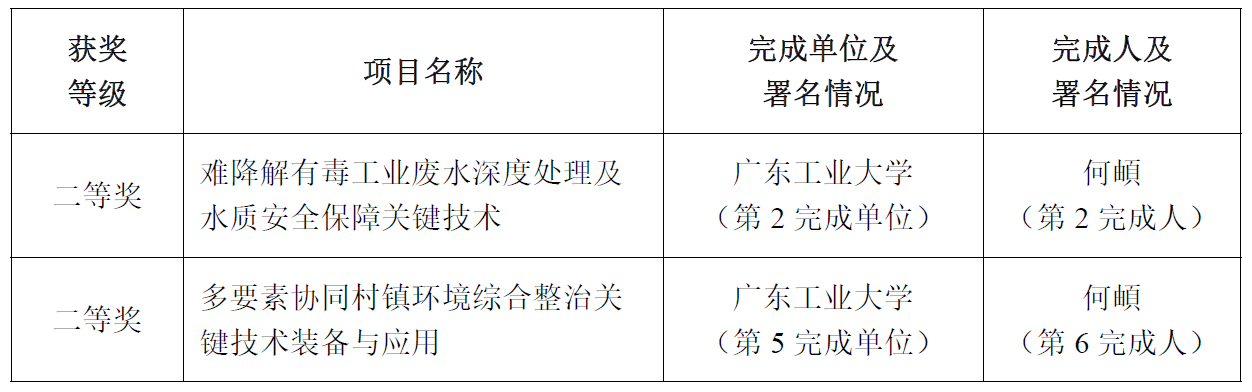 2021年1月15日,中国产学研合作促进会公示了2020年中国产学研合作创新与促进奖获奖项目名单(公示期2021年1月15日-1月21日)。其中,a漫 何頔教授与东莞理工学院、中国矿业大学(北京)等共同申报的《难降解有毒工业废水深度处理及水质安全保障关键技术》荣获产学研合作创新成果奖二等奖。此外,何頔教授与中国环境科学研究院、深圳市深港产学研环保工程技术股份有限公司等共同申报的《多要素协同村镇环境综合整治关键技术装备与应用》同时荣获产学研合作创新成果奖二等奖。截至目前,a漫 已获产学研合作创新成果奖3项。