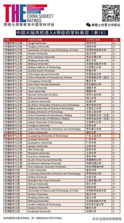 环境科学与工程学科在泰晤士高等教育中国学科评级中进入A-等级。