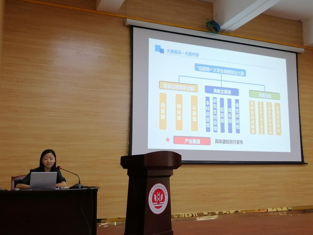 师生参与创新创业活动的热情,培养学生创新精神和创业意识,全面提高学生创新创业能力和综合素质,5月26日上午,环境生态工程研究院于科技南楼一楼多功能报告厅举办“互联网+”创新创业项目申报培训会。学校就业指导中心副主任陈雨婷、研究院直属党支部副书记曾志英、研究院本科教学首席教授谭倩及相关师生出席了本次培训会。