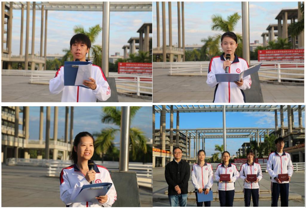 为深入学习贯彻党的二十届四中全会精神,大力弘扬爱党爱国主义精神,激励广大学子奋勇逐梦、将青春奋斗融入党和人民的事业,11月24日清晨,a漫 在大学城校区正门广场举行“铭记历史当自强 奋勇逐梦谱华章”主题升旗仪式暨爱国主义教育活动。学院党委副书记武慧娟、学校学生处思教科王治力老师、2025级本科生班主任洪念老师、学院专职辅导员、2025级全体本科新生及青马班学员参加。活动由本科生辅导员欧少珍老师主持。