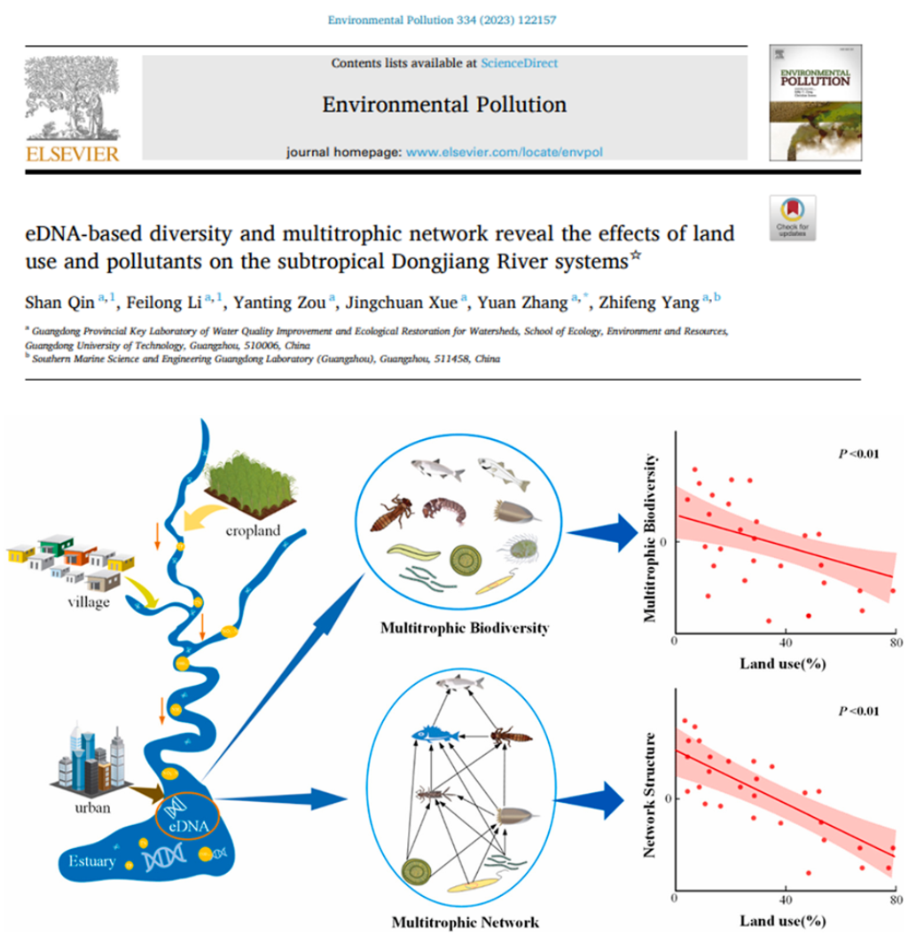 (3) Qin, S#., Li, F#., Zou, Y., Xue, J., Zhang, Y*., & Yang, Z. (2023). eDNA-based diversity and multitrophic network reveal the effects of land use and pollutants on the subtropical Dongjiang River systems. Environmental Pollution, 334, 122157.