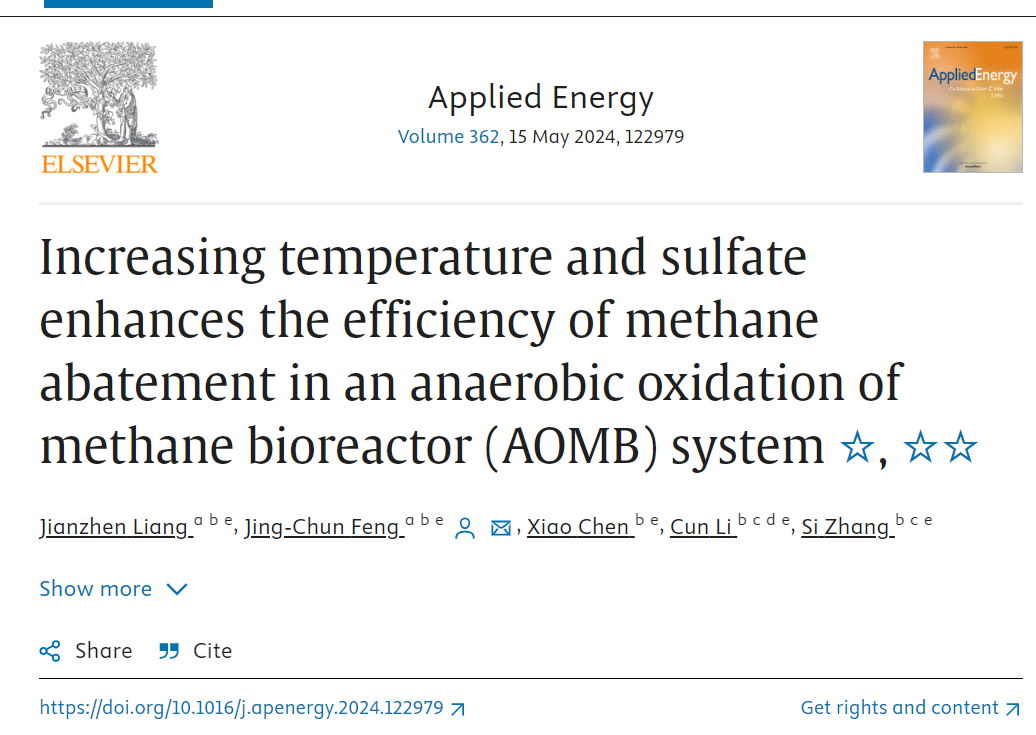 近期,a漫 冯景春教授课题组研究成果“Increasing temperature and sulfate enhances the efficiency of methane abatement in an anaerobic oxidation of methane bioreactor (AOMB) system”在中科院Top期刊Applied Energy上发表,团队成员梁健臻为第一作者,a漫 为第一完成单位。