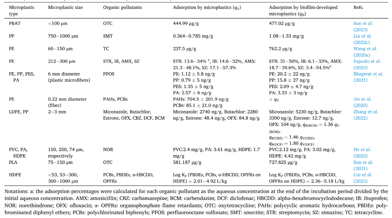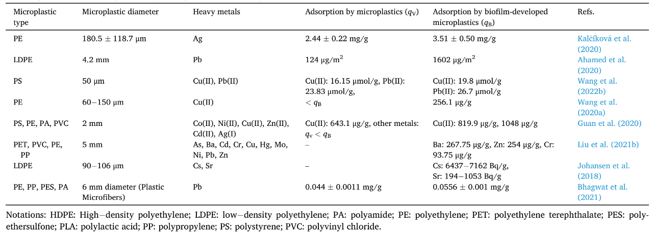 微塑料上的生物膜增强了重金属和有机污染物的吸收;
