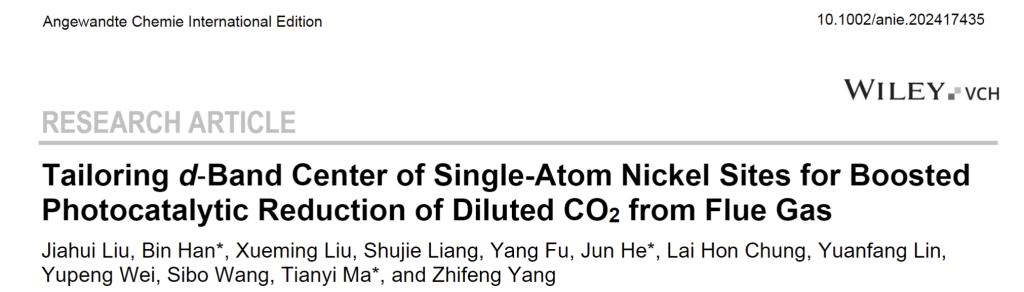 论文速递 | a漫 韩彬教授课题组Angew. Chem. Int. Ed.:调节单原子镍位点的d波段中心促进光催化还原烟气中的低浓度CO2