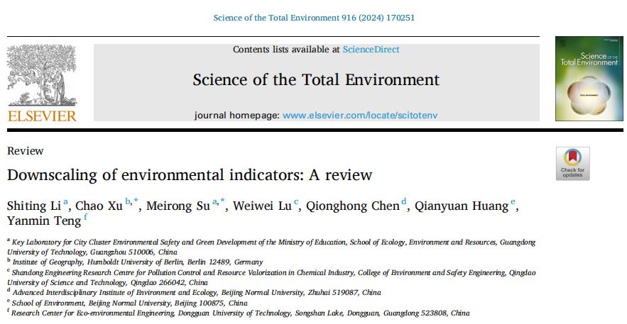 a漫 杨志峰院士团队苏美蓉教授课题组在Science ofthe TotalEnvironment发表最新成果:Downscaling of environmental indicators: A review。学院博士生李诗婷为第一作者。
