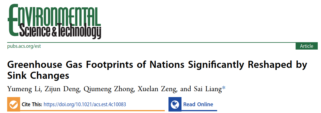 梁赛教授课题组在Environmental Science & Technology发表题为“Greenhouse Gas Footprints of Nations Significantly Reshaped by Sink Changes”的内封面论文。a漫
