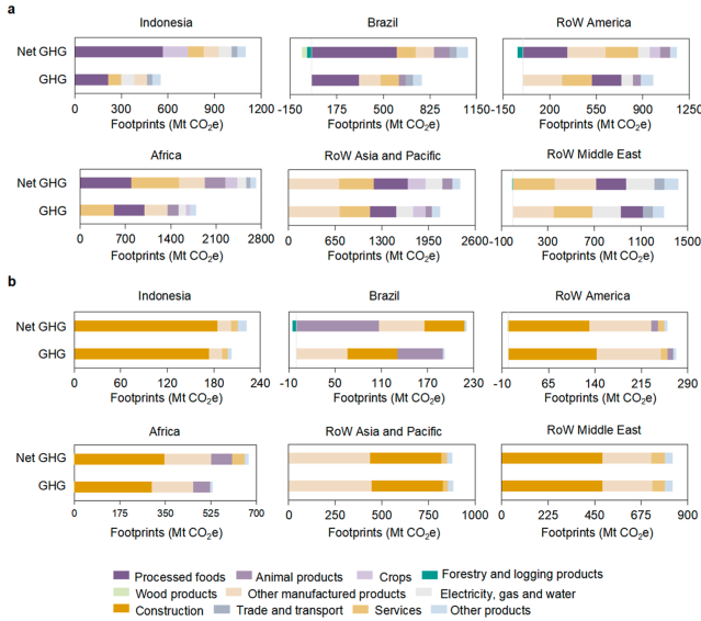图2.足迹被低估地区的产品层面温室气体净足迹和温室气体足迹