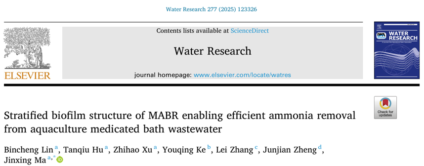 马金星教授课题组在环境领域知名学术期刊Water Research上发表了题为“Stratified biofilm structure of MABR enabling efficient ammonia removal from aquaculture medicated bath wastewater”的研究论文。