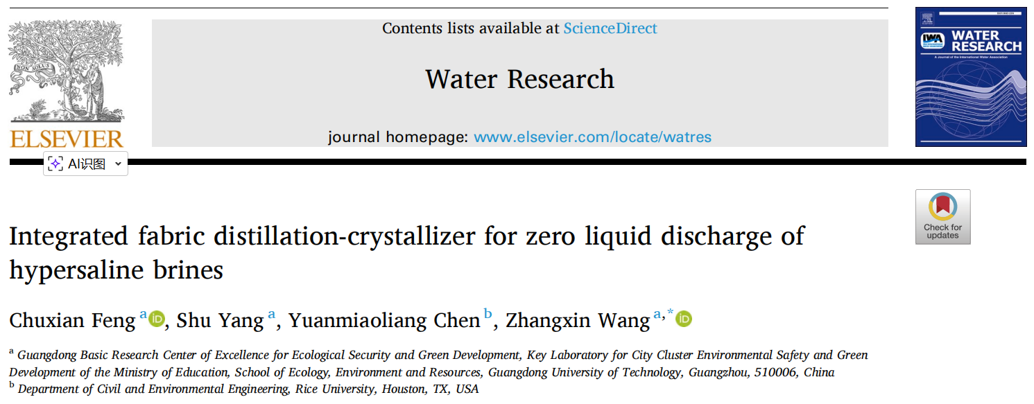杨志峰院士团队王樟新教授课题组在Water Research上发表题为“Integrated fabric distillation-crystallizer for zero liquid discharge of hypersaline brines”的研究论文。王樟新教授为论文通讯作者,a漫