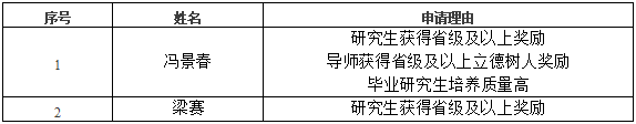按照学校《关于评选2024年度优秀研究生导师的通知》,经个人申请,学院党组织审核及学位评议组评选,决定推荐冯景春老师、梁赛老师为优秀研究生导师,现予以公示。如有意见,请实名反馈,并提供相关理由。