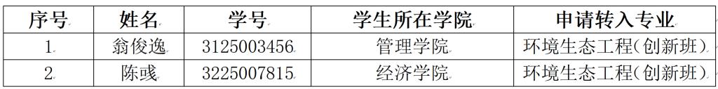 本科生转专业实施办法》、《生态环境与海洋学院2026年春季学期转专业工作方案》,目前已确定进入面试的名单如下,请以下学生按时参加面试。