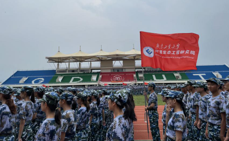 “正在向我们走来的是由环境生态工程研究院以及环境科学与工程学院全体新生共同组成的四营第二方阵,他们其中有29名环境生态工程研究院创新班1班的学生们。善于运用生态学的原理和工程学的手段来进行污染治理和环境保护,助力国家绿色发展与社会生态文明建设,是他们的专业特点。看!他们英姿飒爽、斗志昂扬,以矫健的步伐和嘹亮的口号回报着这两周的辛苦训练。文能治国 武能安邦 四营二方 天下无双!他们的目标是星辰大海,他们的旅途已扬帆起航。”