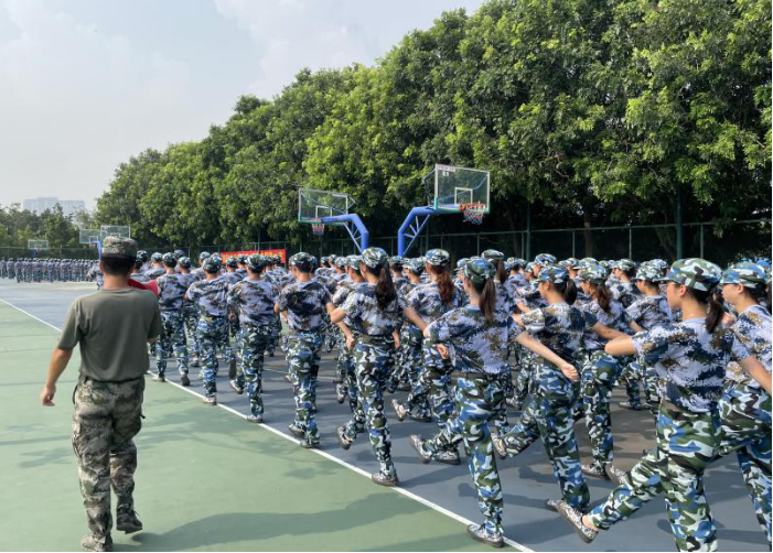 最能体现队伍整体性和团结性的是队列练习。摆臂、齐步走、正步走,这些常规练习似乎有些枯燥,但同学们没有丝毫懈怠,认真完成每一个动作。整齐的队列还需要标兵的带领,连队中选出优秀的新生代表担起标兵的职责。被选中的新生们更加刻苦练习,只为带领全队走出风采。教官们一遍又一遍地强调动作要点,并亲自示范,耐心的教导极大地提高了同学们的完成效果。初秋的天气依然炎热,在烈日下,新生们汗流浃背,但他们都咬紧牙关地坚持着。