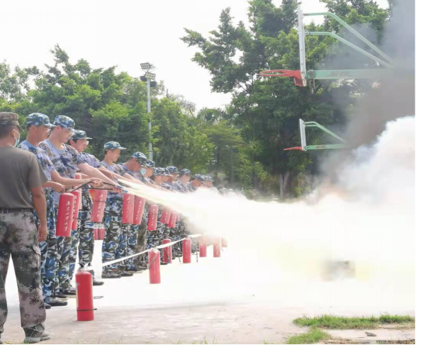 在军训过程中,教官们向同学们讲解了干粉式灭火器的使用方法和消防水带与水枪的使用须知。俗话说:光说不练假把式。9月10号,教官们组织全体学生开展了消防器具实操演练,让我们从理论走向实践。面对着熊熊烈火,我们才意识到,理论和实践之间还隔着一层恐惧。我们熟知如何使用灭火器,但在关键时刻,敢不敢在面对生死的威胁时把手摁下去,更考验我们的胆量。同学们并没有被恐惧所压倒,他们身后是战友,是教官,是他们勇敢的来源,是火焰为之熄灭的力量。