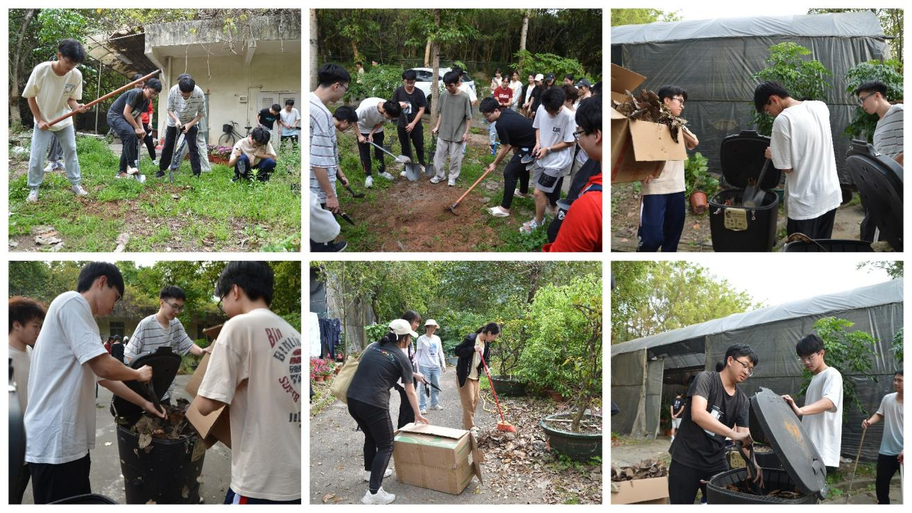 落叶堆肥在碳排放中起着双重作用, 既消耗能量产生碳排放, 又提升作物固碳能力减少碳排放,不仅是物质的循环利用,也是绿美校园建设的治理实践。在劳动中,章莹引导同学们要以劳动实践的方式,将所学的生态学理论躬行实践,体会学科和生活的紧密联系;学院研会主席邢泽霖向同学们介绍了农业农村减排固碳,这是实现碳达峰碳中和的重要举措,也是潜力所在;研会成员李玥指导同学们认识了一些能降解有机污染物、协助去除环境污染的植物。