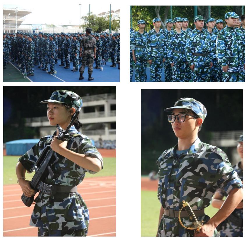 新生展示着他们青春的风采,训练场上,口号声震天动地,气势磅礴。在教官的带领下,立正、稍息、跨立、停止间转法、行进与立定…… 每一个动作都力求标准,每一个步伐都坚定有力。
