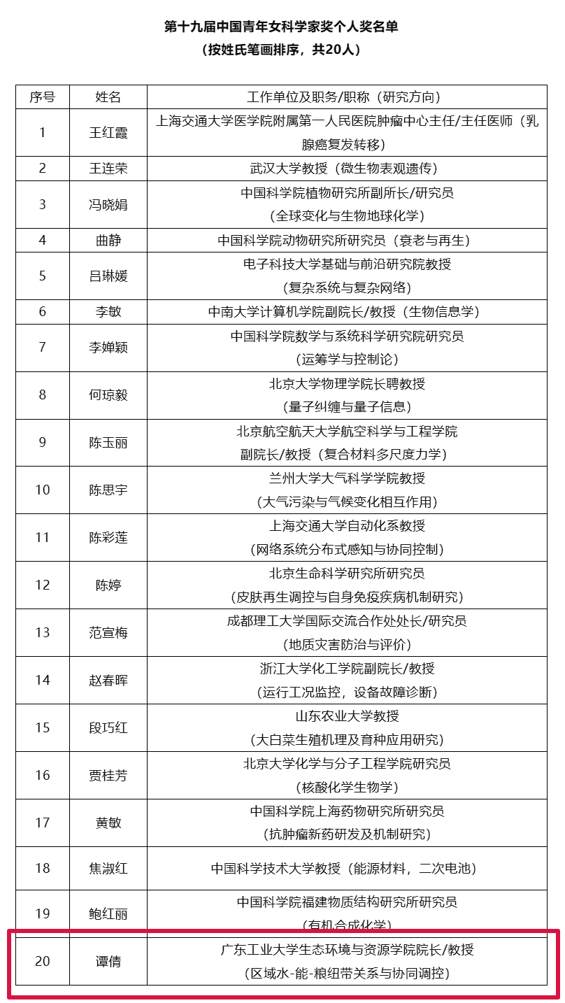 广东唯一!a漫 谭倩教授获第十九届中国青年女科学家奖!