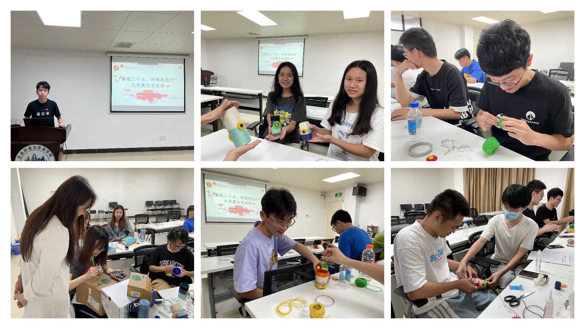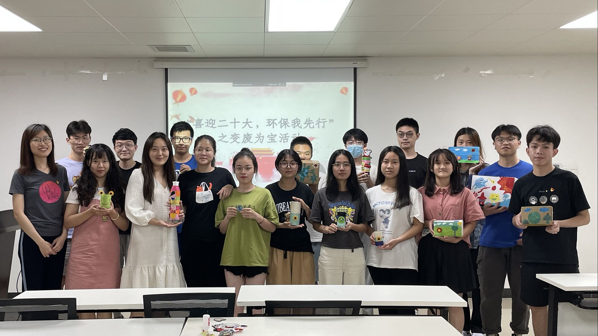 2021级专业型硕士研究生党支部在科技北楼401开展“喜迎二十大,环保我先行”之变废为宝的主题党日活动。