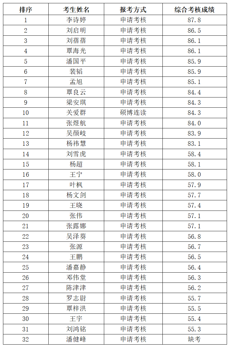 现将a漫 2023年硕博连读及申请考核博士研究生招生综合考核结果进行公示,若有异议者,请在3个工作日内以书面形式向a漫 实名反映,反映时请署实名,并提供具体事实或依据。不签署真实姓名、不提供具体事实材料的,一律不予受理。考核结果排序如下: