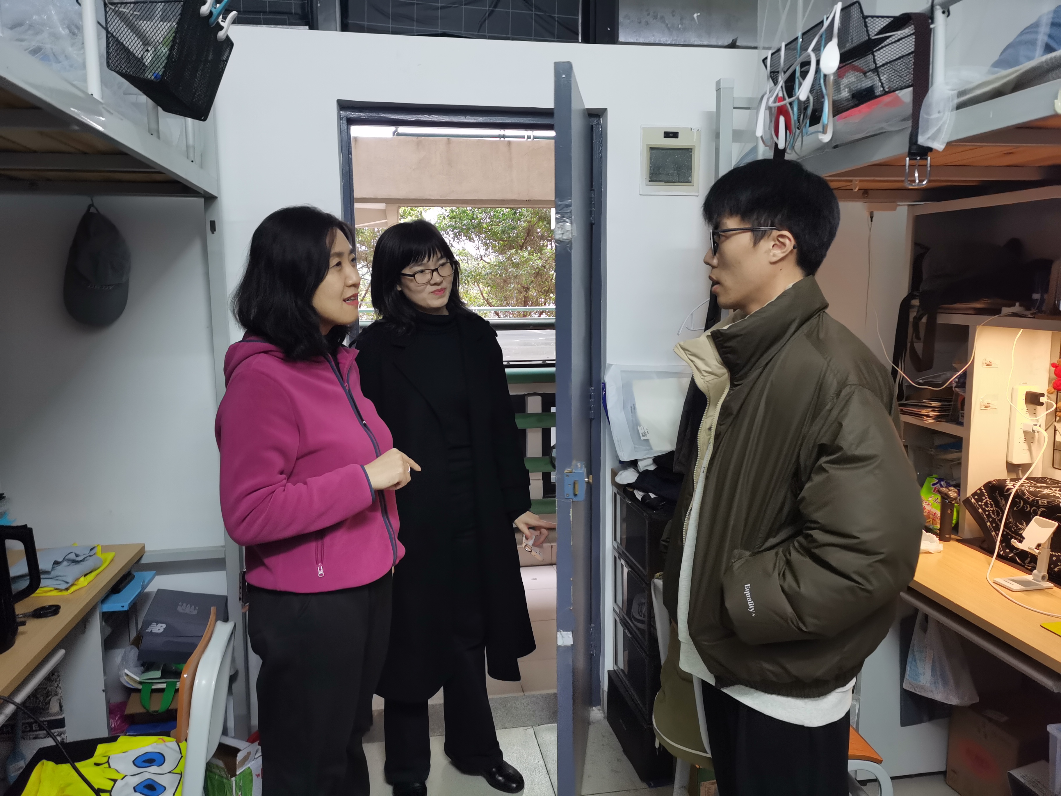 值此新春将至,为做好a漫 寒假学生安全教育与服务保障工作,了解和关心假期学生的学习、生活情况,让学生度过一个平安喜庆的春节,近日,学院党委书记曾志英、副书记武慧娟以及辅导员走访慰问寒假留校学生。走访期间,曾志英代表学院对留校学生表示节日的慰问和衷心的祝福,并详细了解同学们的留校生活情况及寒假期间安排。她提醒同学们留校期间应严格遵守学校相关规定,牢记“安全弦”,重视在宿舍、实验室、工作室的消防安全...