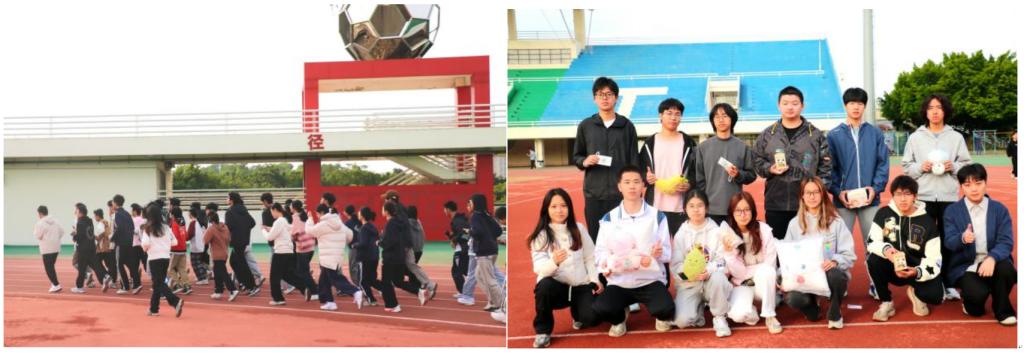 每次晨跑令下,同学们身着运动装,正式开跑。同学们迈着整齐的步伐,沿跑道环线完成两公里集体跑,朝阳下形成一道流动风景线。学院向体测成绩优秀及积极运动的学生颁发第十五届全运会吉祥物抱枕和学院文创奖品,以资鼓励。